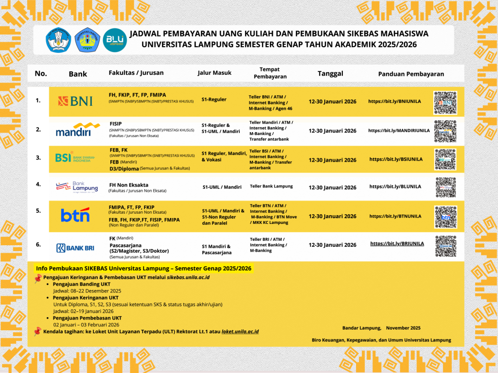Pengumuman5 Januari 202623 Februari 2026 Pengumuman : Pemberitahuan Jadwal UKT Semester Genap T.A. 2025/2026 15706-Pemberitahuan-Jadwal-UKT-Smt-Genap-2025-2026