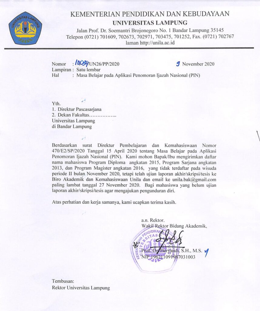 Pengumuman Tentang Penyelenggaraan Wisuda Periode II Bulan November 2020