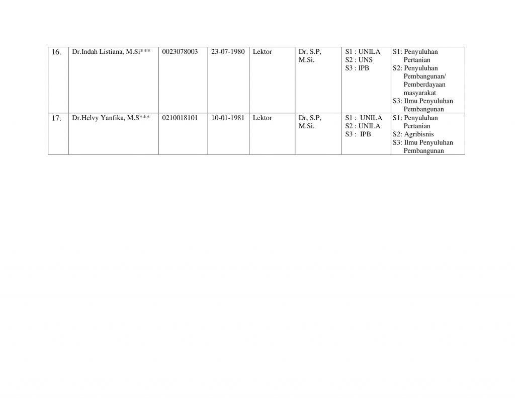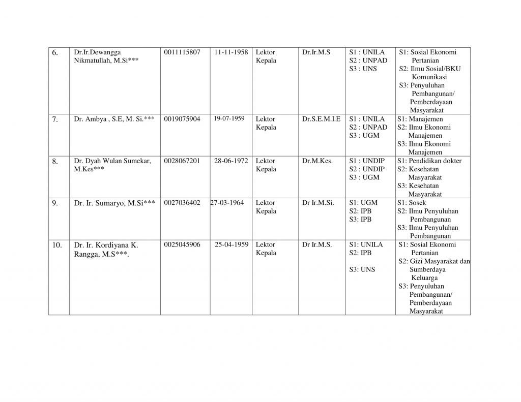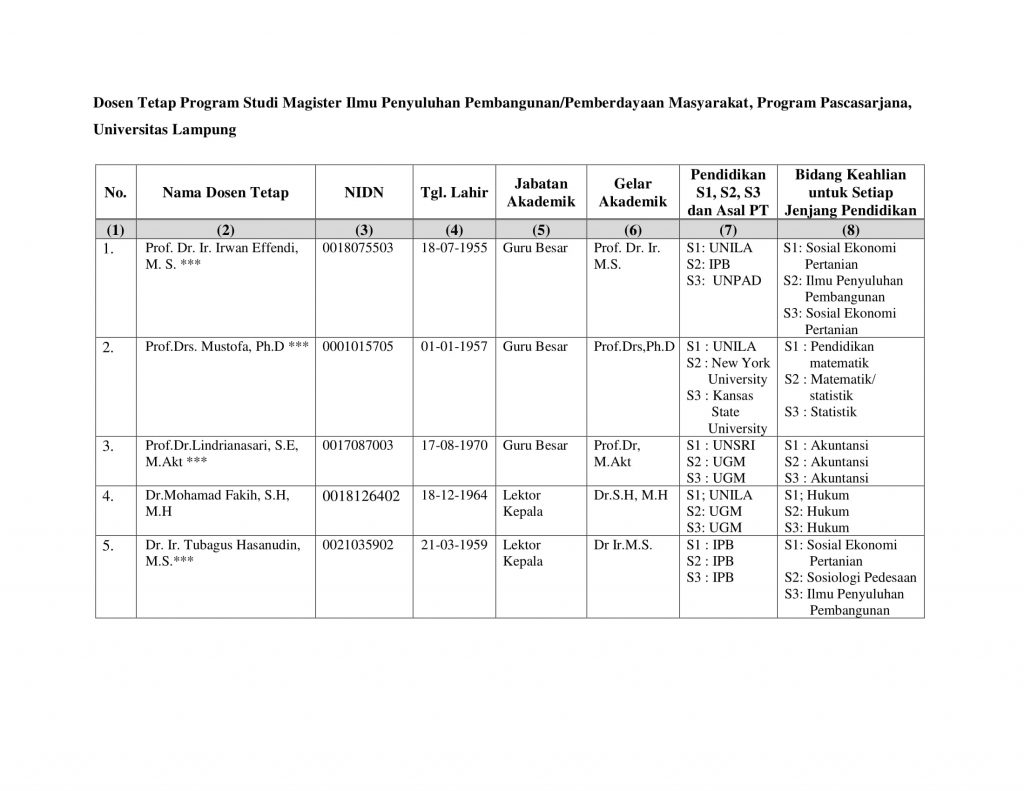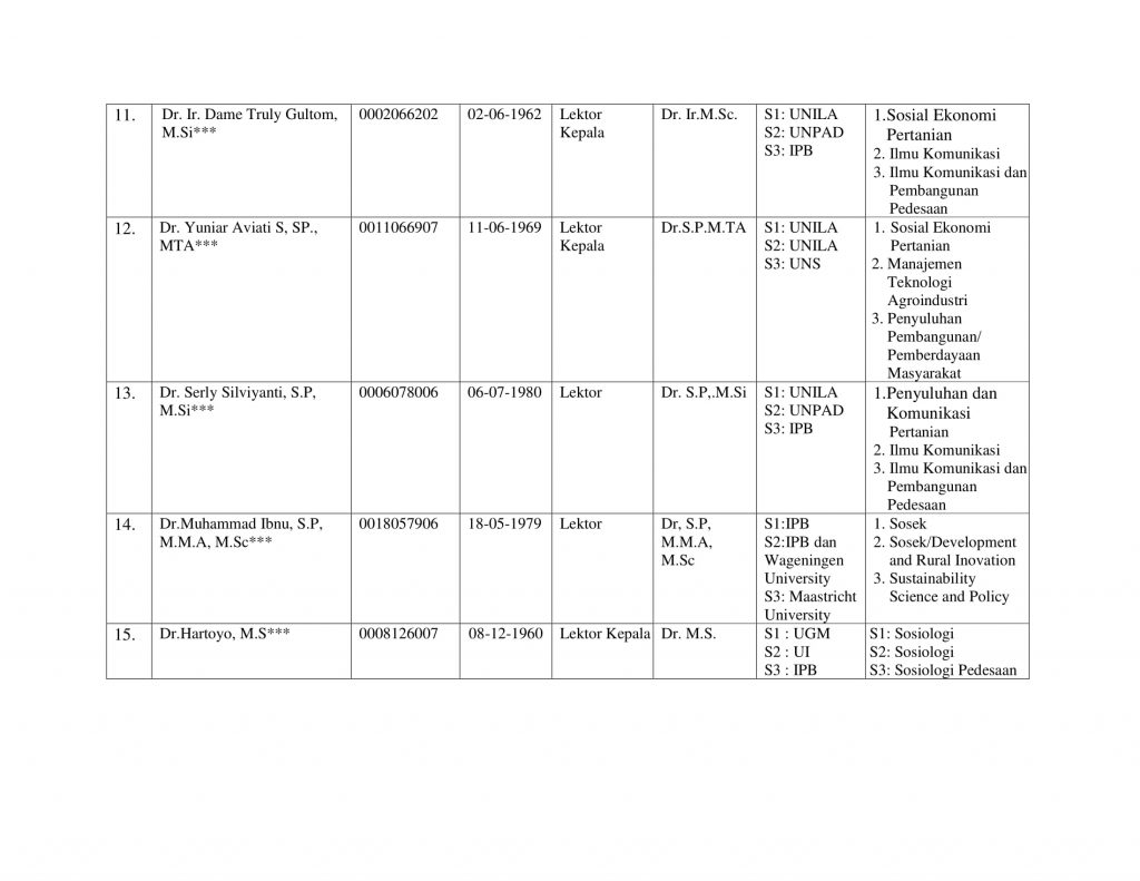 Para dosen mengampu mata kuliah yang selaras dengan kompetensi inti program studi, seperti Metodologi Penelitian, Filsafat Ilmu, Pembangunan Berkelanjutan, Inovasi dan Dinamika Sosial, serta Evaluasi Program Penyuluhan.